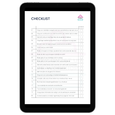 Wil je meer succes behalen met jouw webshop? Download dan gratis de checklist met 20 optimalisatie tips waar je direct mee aan de slag kunt!